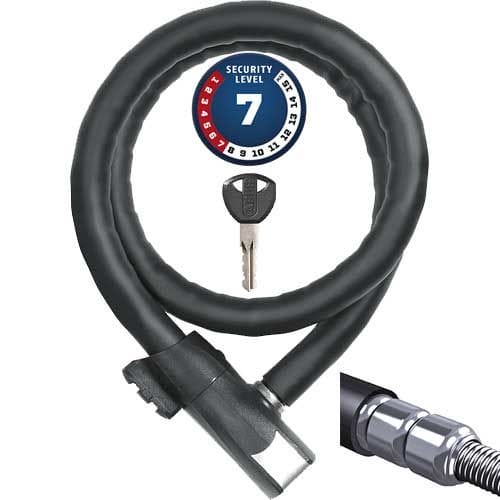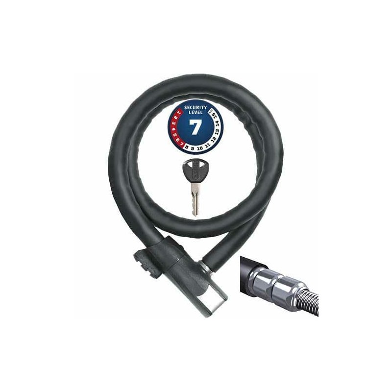 - ocelové lano je chráněno válečky z tvrzené oceli - tloušťka kabelu 20 mm - automatické uzamykání bez použití klíče - ochrana proti odvrtání uzamykacího systému - držák pro připevnění na rám kola - délka 110cm - hmotnost: 980 g