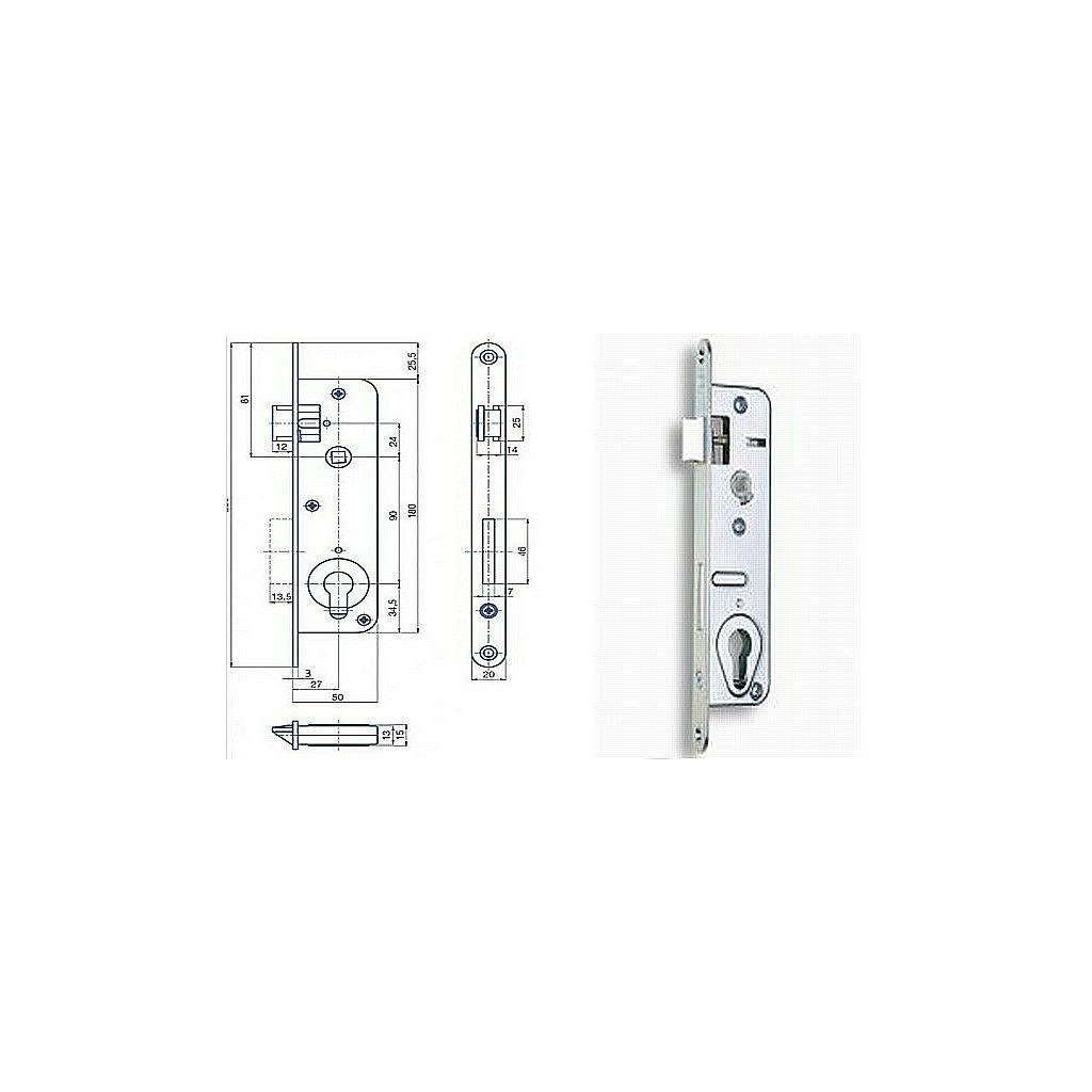 Parametry produktu  DOKOV Zadlabací zámek 203/5 90/50 dorn 27mm Pravý vložkový Zinek