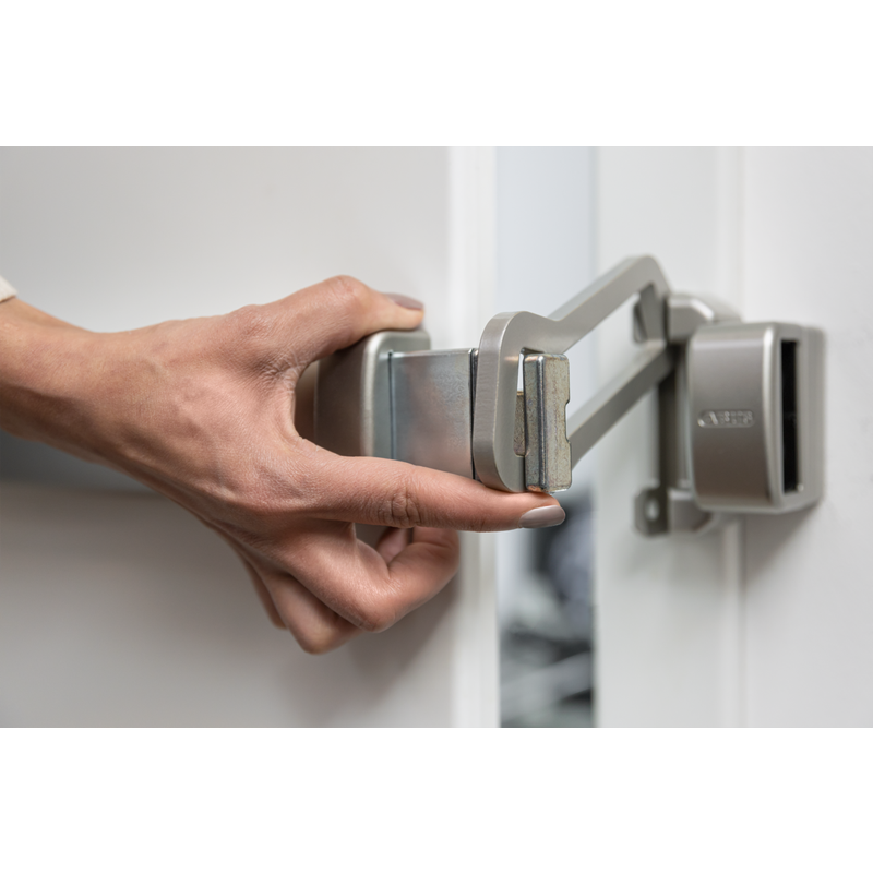Závora ABUS PR2600 zajišťuje dveře po celé jejich šířce – oba masivní čepy se uzamykají do protikusů kotvených do zdiva. Díky převodovému mechanismu pracuje závora mimořádně tiše a hladce. Vhodná pro dřevěné, kovové i plastové dveře.