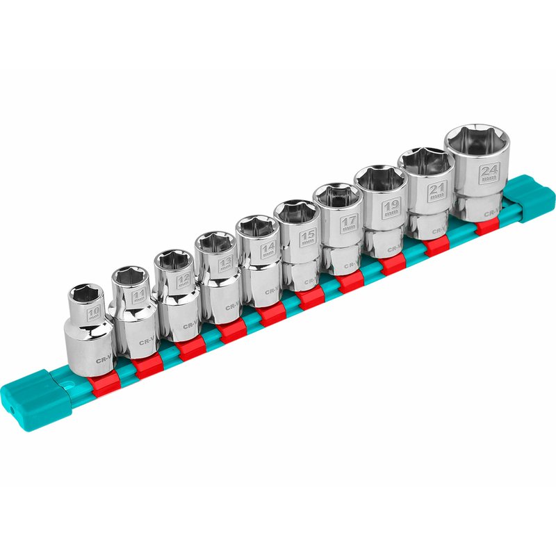 10ks 1/2" hlavic:10,11,12,13,14,15,17,19,21,24mm mm. Materiál 50BV30 vysoce kvalitní CrV ocel. Tepelně zpracováno a pochromováno.