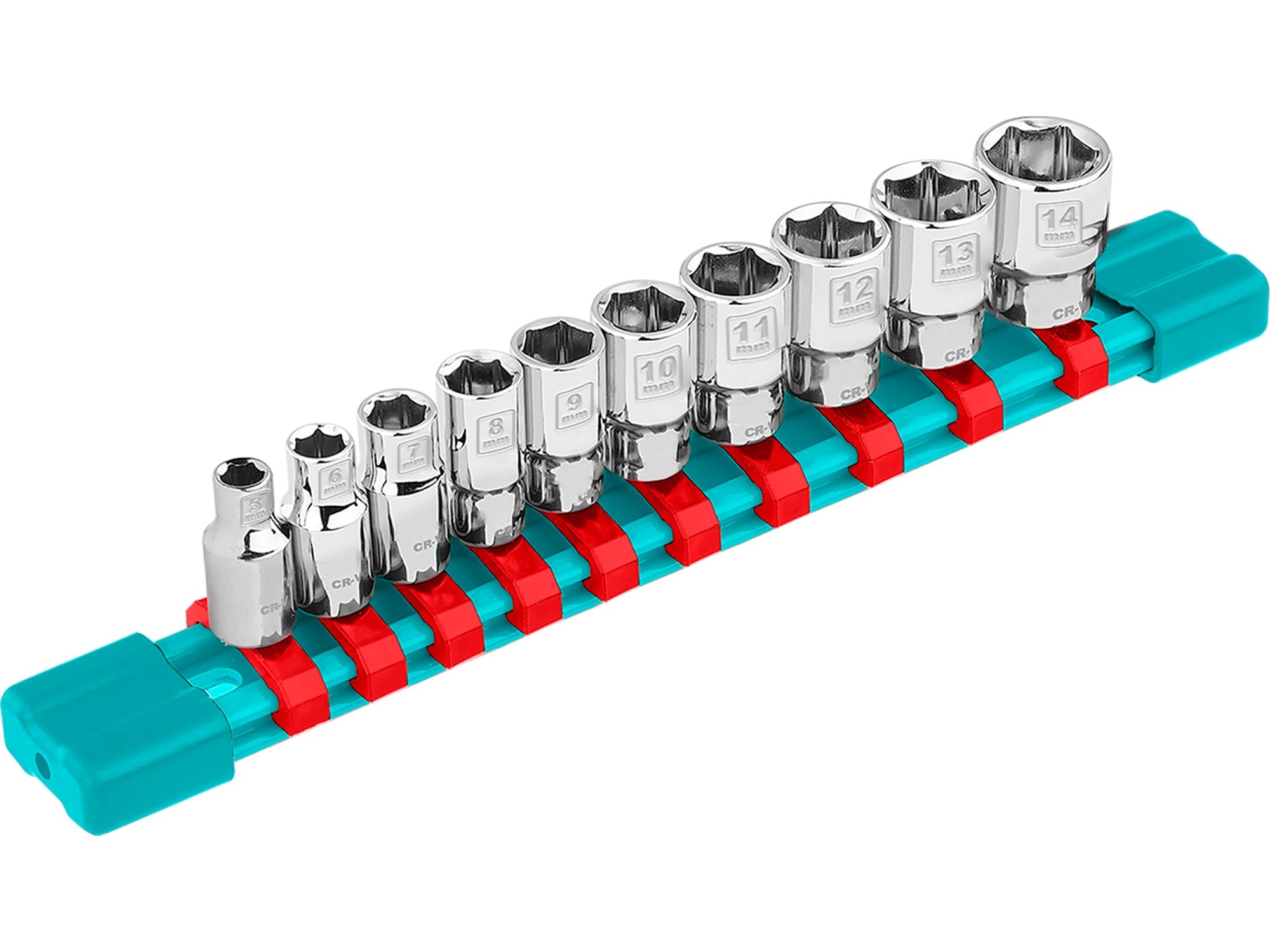10ks 1/4" hlavic:5,6,7,8,9,10,11,12,13,14 mm. Materiál 50BV30 vysoce kvalitní CrV ocel. Tepelně zpracováno a pochromováno.