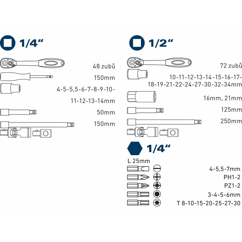 hlavice nástrčné, sada 60ks, 1/4", 1/2"