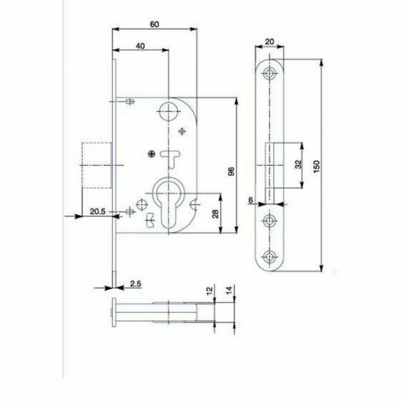 Zámek zadlabací na dozický klíč, bez převodu, HOBES K104• řada: 72/60 (Dornmass 40)• jednozápadový• bez převodu• otvory pro dělené štíty• zámek je pravolevý• rozteč 72 mm• zádlab 60 mm• čelo 20 mm x…