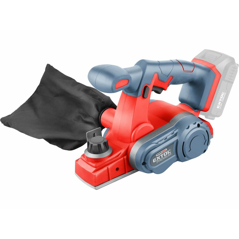 Baterie:_________________SHARE20V Li-ion Hloubka polodrážky:______0–2,7mm Hmotnost s baterií:______2,3kg Hoblovací šířka:_________60mm Nastavitelný úběr:_______0–1,25mm Otáčky:__________________10000/min Značka:__________________EXTOL PREMIUM