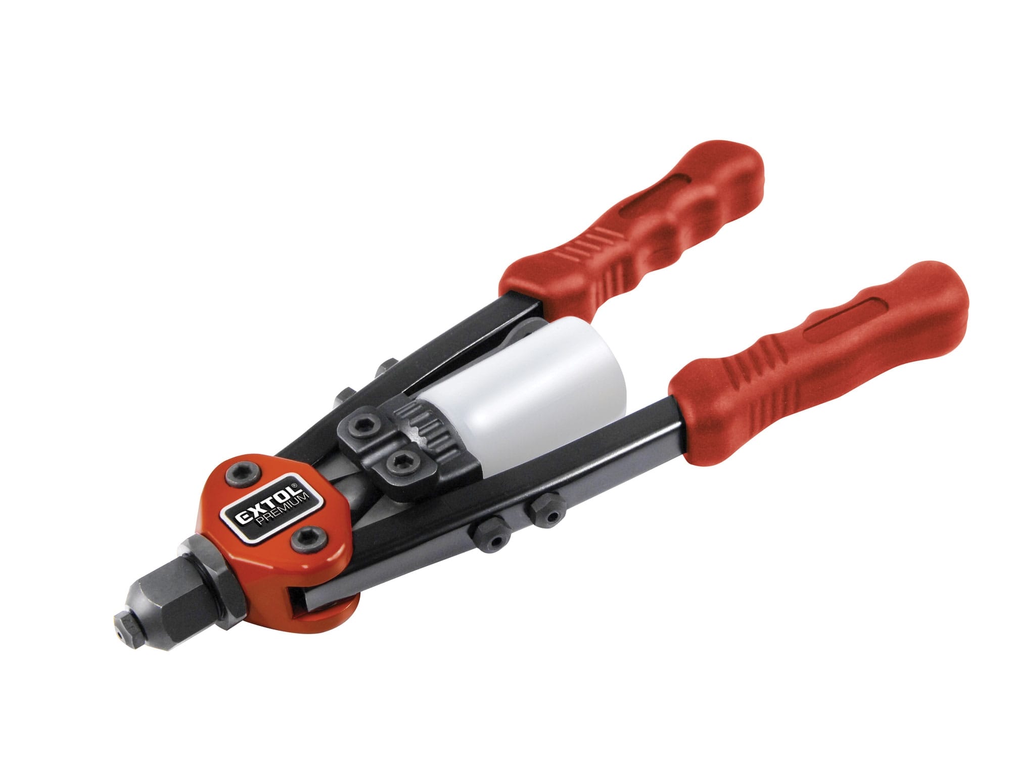Technické parametry:_____320mm Značka:__________________EXTOL PREMIUM Doplňující parametr:_____pro trhací nýty 2,4-3,2-4,0-4,8-6,4mm, z materiálů Al, měď, ocel, nerezová ocel