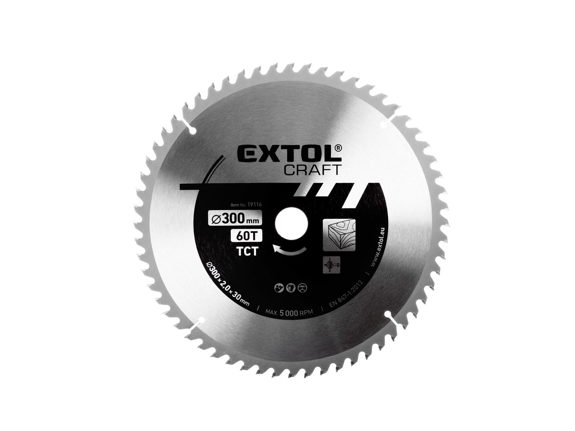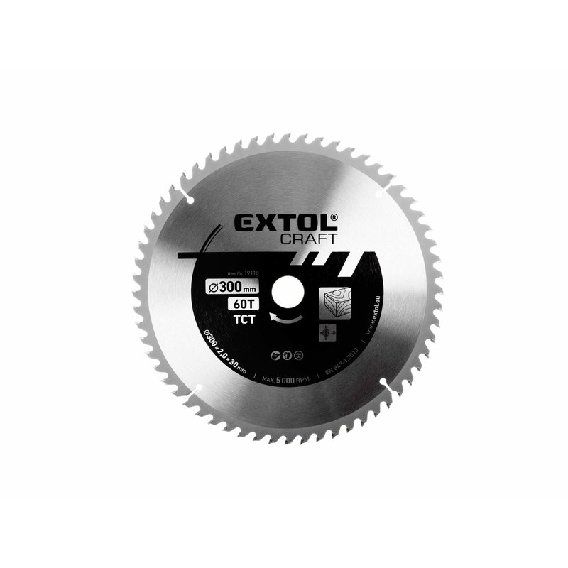 Info:____________________ekonomická řada pilových kotoučů s SK plátky na podélné a příčné řezy masivních dřev a dřevin splňující normu EN 847-1 Technické parametry:_____O 300x3,0x30mm, 60T Značka:__________________EXTOL CRAFT Doplňující parametr:_____tloušťka těla kotouče 2,0mm, max.ot. 5000/min.