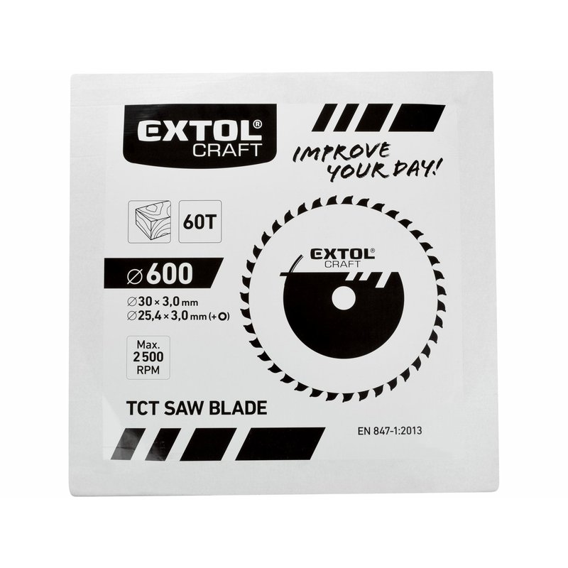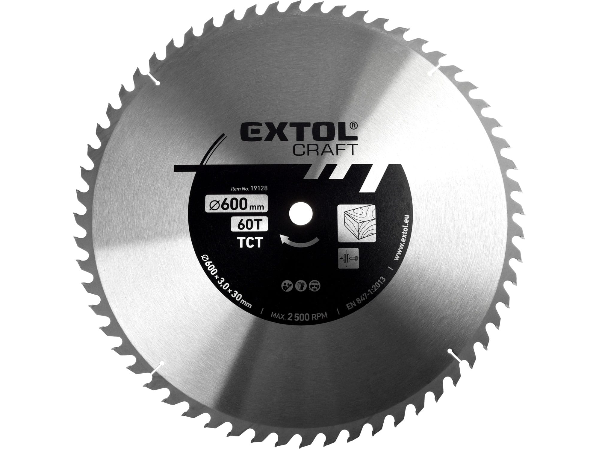 Info:____________________ekonomická řada pilových kotoučů s SK plátky na podélné a příčné řezy masivních dřev a dřevin splňující normu EN 847-1 Technické parametry:_____O 600x3,8x30mm, 60T Značka:__________________EXTOL CRAFT Doplňující parametr:_____tloušťka těla kotouče 3,0mm, max.ot. 2500/min.