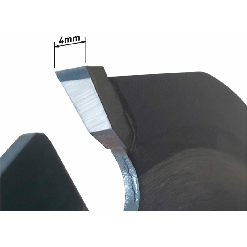 k řezům do dřeva a materiálů na bázi dřeva; řez je prováděn pomocí tří karbidových plátků o řezné tloušťce 4,0mm trapézového tvaru, tloušťka těla kotouče je 2,2mm použití v úhlové brusce pouze za předpokladu, že je úhlová bruska s kotoučem pevně upnuta do (k tomu určené a řádně zabezpečené) horizontální základny a plní tak funkci jako okružní pila