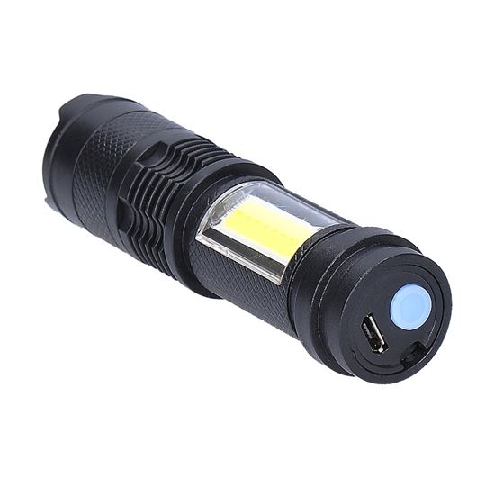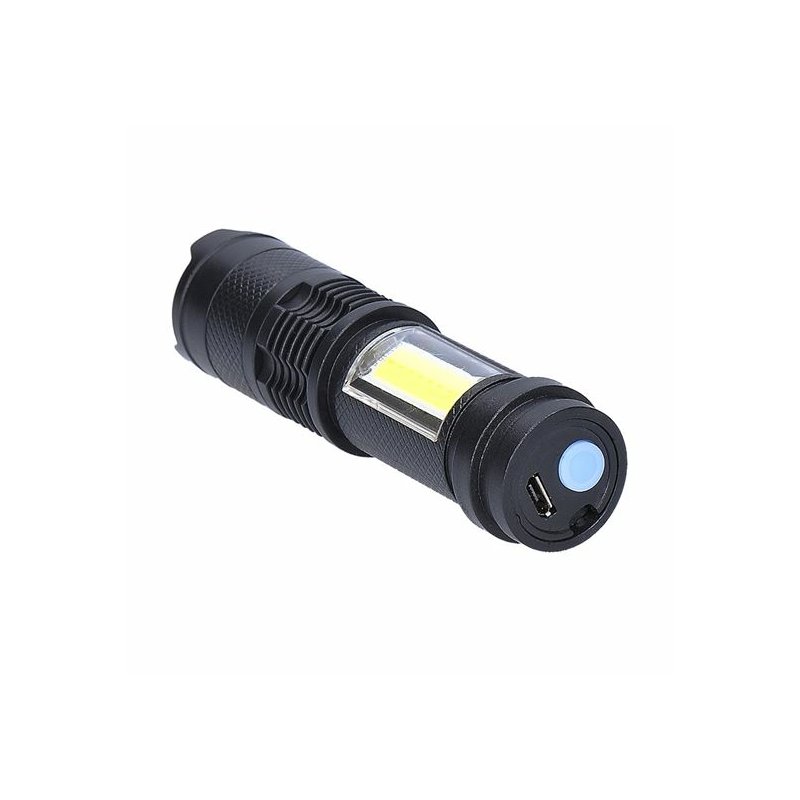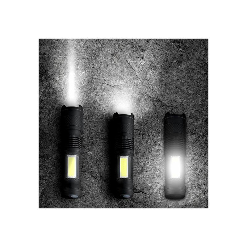 Kompaktní nabíjecí LED kapesní svítilna je ideální pro každodenní použití doma, na cestách i v přírodě. Disponuje dvěma zdroji světla – předním (100 lm) a bočním (70 lm), mezi kterými lze snadno přepínat. Na výběr máte ze tří režimů: 100% přední, blikání přední a 100% boční světlo. Svítilna je vybavena praktickým zoomem pro nastavení světelného kuželu a má odolnost IP44 pro outdoorové použití. Napájí ji Li-Ion baterie 400mAh s výdrží 1–2 hodiny a dobíjí se pomocí USB-C konektoru (doba nabíjení 2 hodiny). Rozměry 100 x 26 mm a černý design z ní dělají praktický a stylový nástroj. Dodává se v display boxu po 6 kusech.