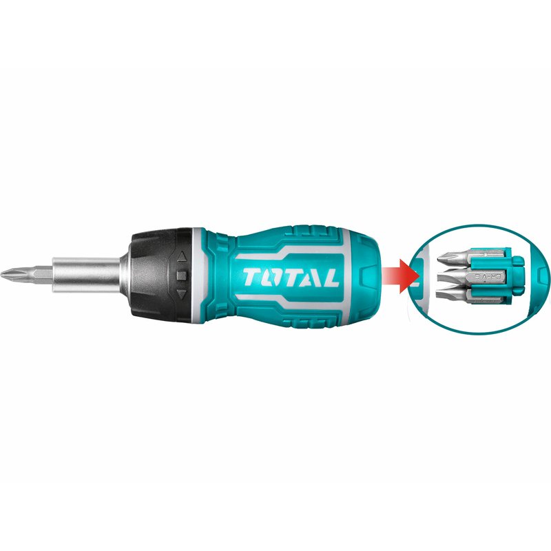 Obsahuje 1ks ráčnového šroubovák s vysoce kvalitní ráčnou, 7 ks 1/4 25mm hrotů velikosti:SL5,SL6,PH0,PH1,PH2,T10,T20