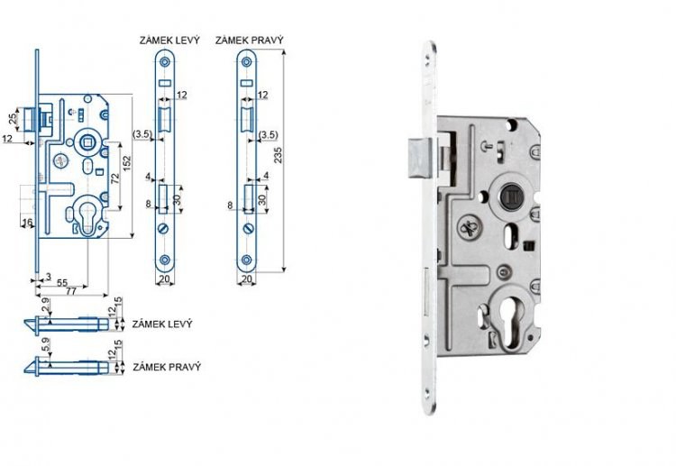 Parametry produktu  Zadlabací zámek HOBES K 321 (K321) Levý 72/77 dorn 55mm vložkový Zinek