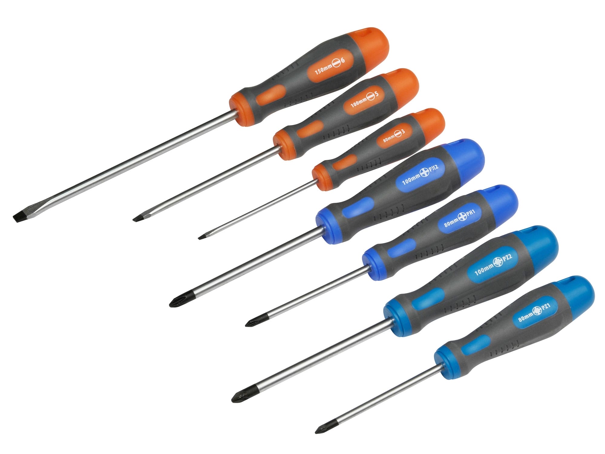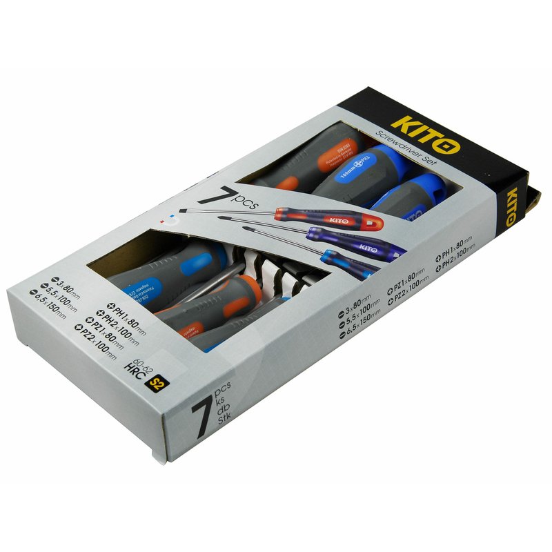 Profesionální šroubováky, spojující špičkové materiály, moderní technologii a ergonomické principy. Pro jakékoli řemeslo.Kovová část šroubováku je vyrobena z oceli třídy S2, vytvrzené v celé délce dříku na HRC 59-60. I při této vysoké tvrdosti si však udržuje vysokou pevnost a houževnatost v krutu. Dřík je povrchově upravený tvrdochromem se saténovým povrchem. Vlastní hrot je dále kalený do tvrdosti HRC 61-62 při zachování pevnosti v rozsahu 12,5-14,0Nm. Pro dosažení vysokého tření v hlavě šroubu je špička opatřená karbidovou vrstvou s příměsí ultrajemných částic s vysokou abrazivitou.Ergonomicky tvarovaná rukojeť je vyrobena z polypropylenu a silikátové gumy, což jí dává vysokou houževnatost, odolnost proti organickým rozpouštědlům a vynikající protiskluzové vlastnosti.