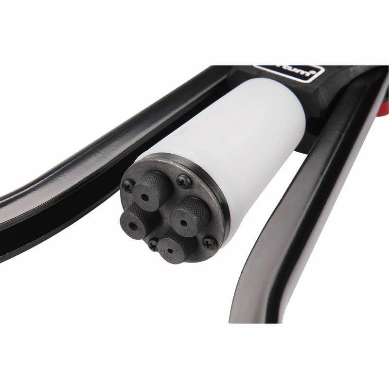 speciální páková konstrukce šetří až 40% nakládané energie plastová sběrná nádobka pro zachycení odtržených hřebíků nýtů čelisti z mimořádně tvrdé CrMoV oceli