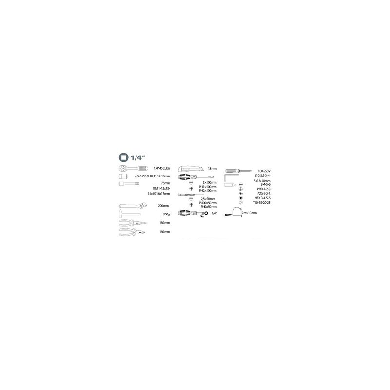 ZRUŠENO! Nahrazeno výrobkem 6583, sada nářadí 59ks, 1/4"