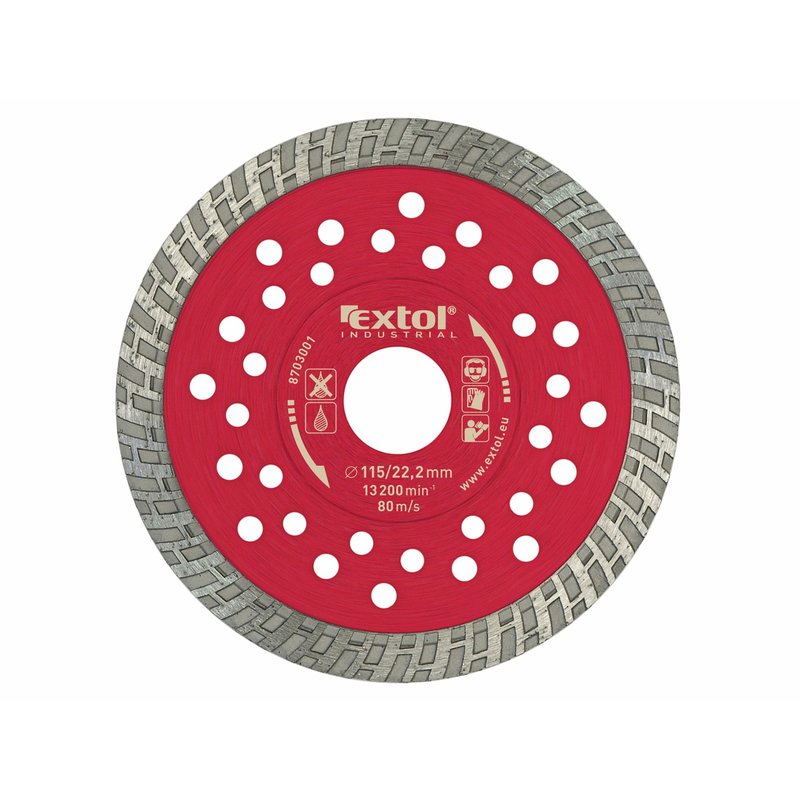 Technické parametry:_____125x22.2mm Značka:__________________EXTOL INDUSTRIAL Doplňující parametr:_____suché i mokré řezání, max. hloubka řezu 35mm, šířka segm. 2,1mm