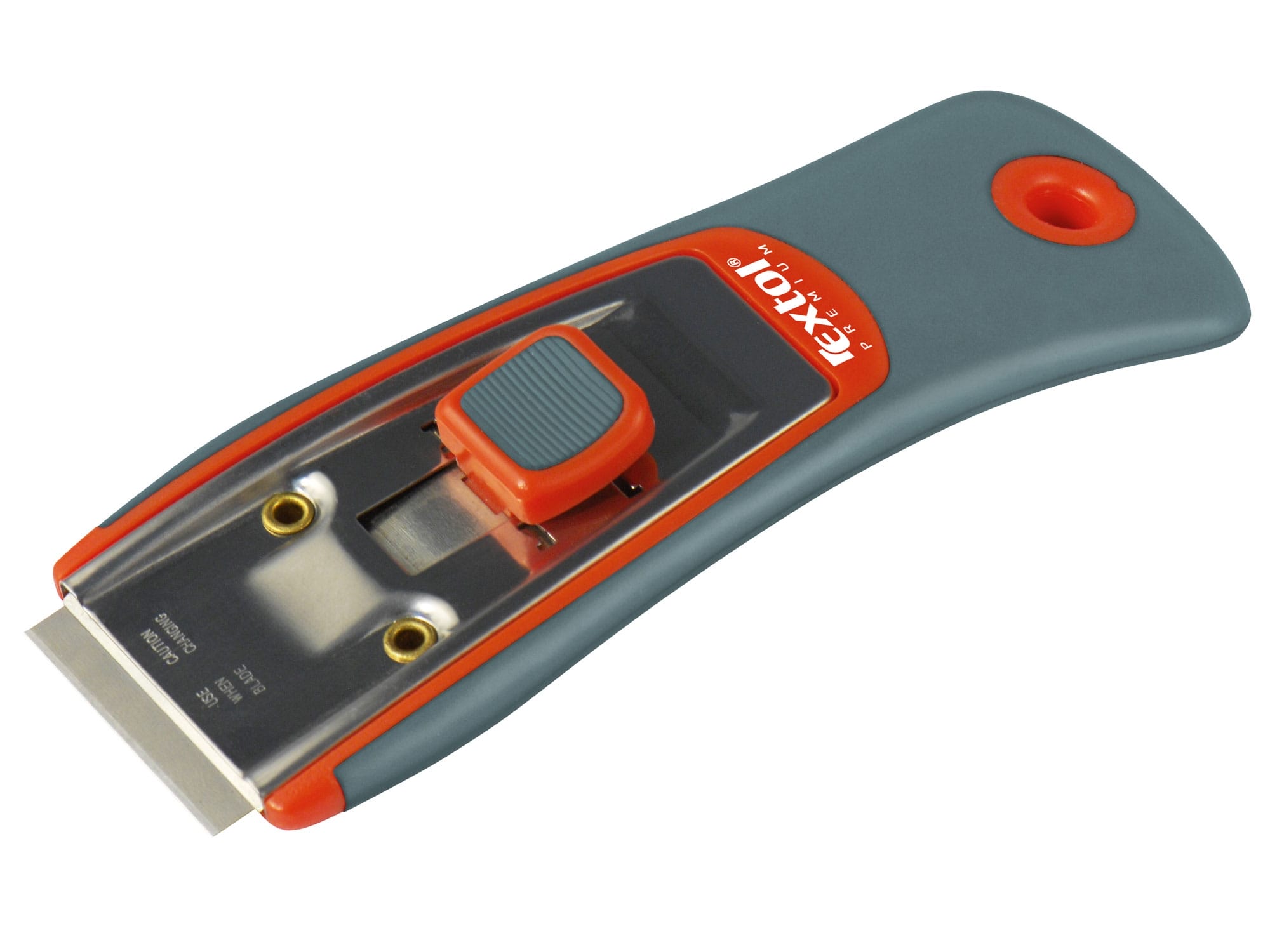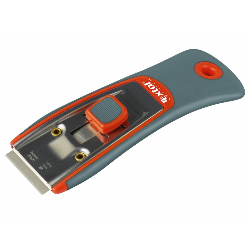 ideální na čištění oken, sklokeramických desek a jiných hladkých povrchů snadná a rychlá výměna břitu tlačítko pro vysunutí a zasunutí břitu rukojeť z tvrdého plastu měkčená protiskluzovou TPR gumou