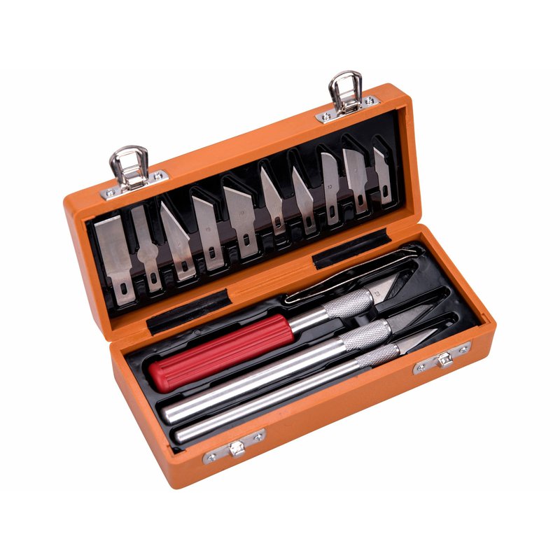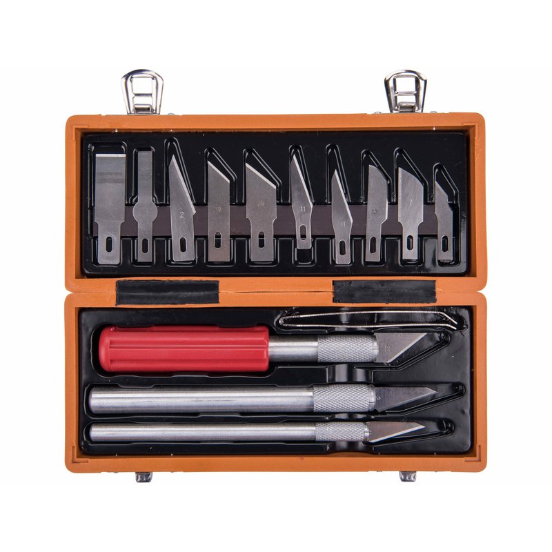 ZRUŠENO! Nahrazeno výrobkem 8855196 nože na vyřezávání, sada 17ks, v krabičce z ABS pl.